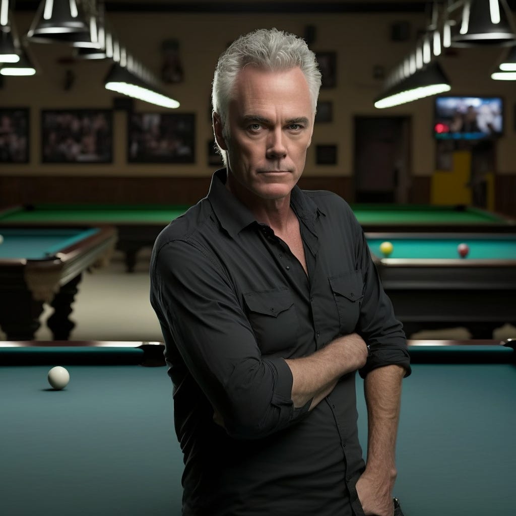 With my freebies almost gone, I finally decide to test Midjourney with a task that I’m sure most people think about when they discover the AI’s potential. I write the prompt: “Photo of Rick McGinnis in black jeans and a black shirt in a pool hall shot in the style of Chris Buck.”